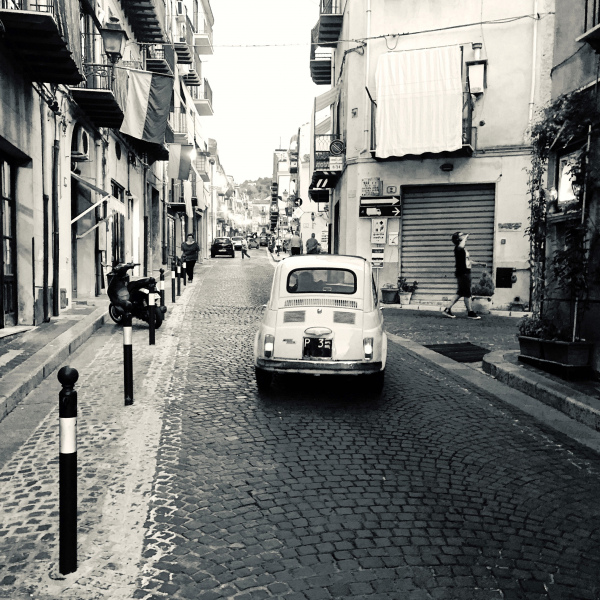 Leinwand "Sizilianische Gasse mit Dame und Auto" 40*40